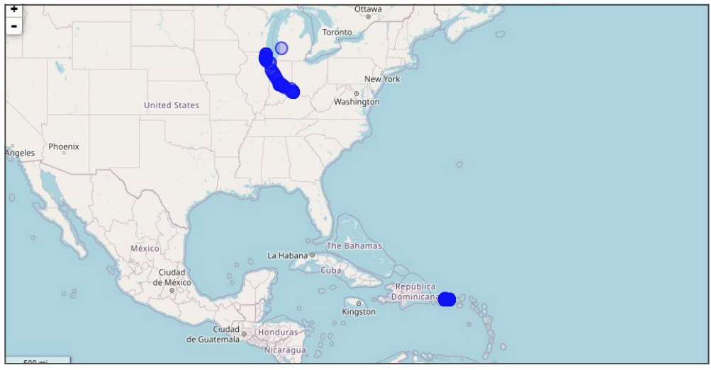 Geofence location creation– Geofence locations and alerts established at start and end warehouse facilities, DHL hub facilities in San Juan and Cincinnati, and at the SJU and CVG airports.